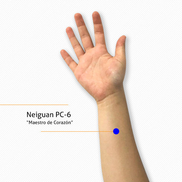 En Acupuntura, el punto Neiguan es conocido como MAESTRO DE CORAZÓN, (PC-6) el cual nos brinda equilibrio en la mente, cuerpo y espíritu.