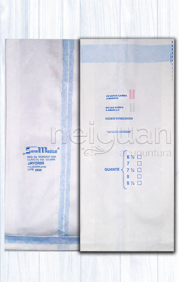 Bolsas de papel reforzadas adecuadas para la esterilización en gas o vapor, especialmente indicada en el proceso de esterilización de material de uso general que no precise la identificación visual desde el exterior del envase.Papel de grado médico de 60 g / m². También cuentan con recuadro impreso de indicador y franja termosellable.