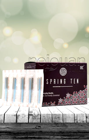 Cada caja contiene 1,000 agujas para acupuntura con entorchado coreano "spring handle" en acero inoxidable, conteniendo pequeños paquetes de 10 piezas con un aplicador.