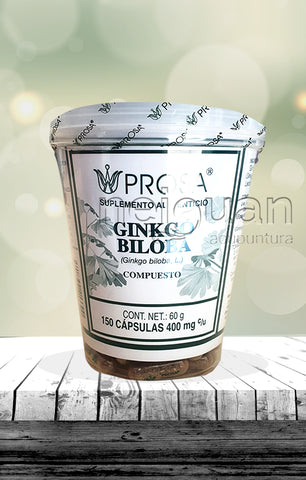 Frasco con 150 cápsulas de Ginkgo Biloba.
