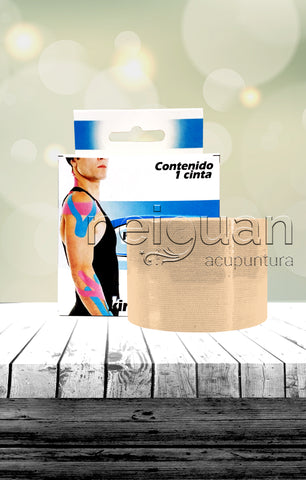 Cada caja contiene un rollo de 5m x 5cm de cinta kinesiológica con adhesivo hipoalergénico.