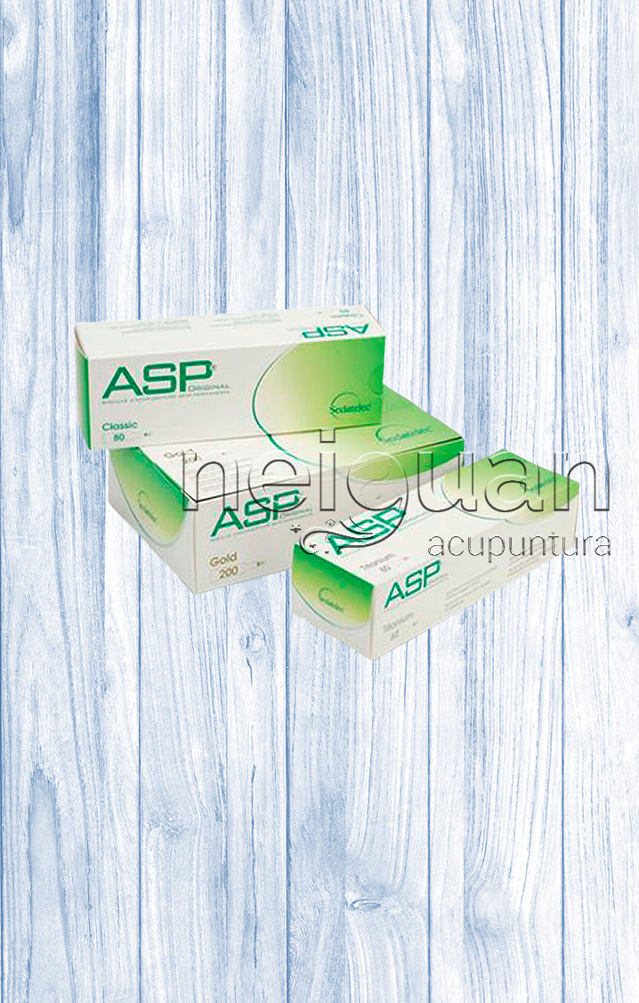 Por más de 25 años , las agujas del oído ASP se han utilizado para mejorar los tratamientos con AURICULOTERAPIA . Estas pequeñas agujas, semi - permanentes tienen la forma de un dardo y están diseñadas para permanecer en puntos auriculares por un tiempo más largo para lograr una mayor estimulación. Cada aguja ASP tiene su propio inyector, que consta de una guía para posicionar con precisión la aguja, y un émbolo para la inserción. El inyector también contiene un imán añadido para la estimulación. Estos inyectores magnéticos se pueden administrar al paciente para estimular aún más el punto que contiene la aguja ASP .