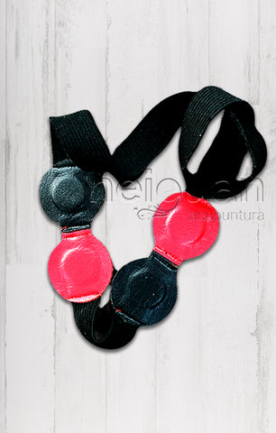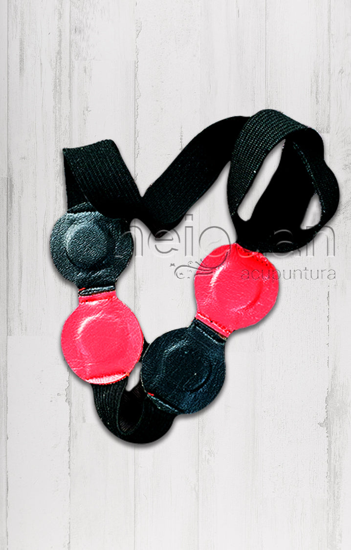 Diadema con 4 imanes de neodimio con una potencia de 2,500 gauss cada uno (10,000 gauss en total) cosido en vinipiel con código de color y elástico a los costados para su ajuste: