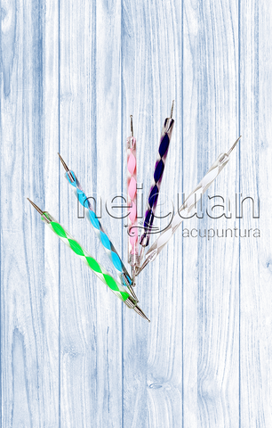 Localizador acupuntural y auricular de acrílico con punta doble hecha de acero.