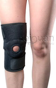 Colóquese la rodillera procurando no apretar demasiado para que no le moleste en cualquiera de las dos piernas, recordando que puede utilizarse directamente sobre la piel o sobre la ropa.