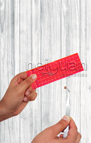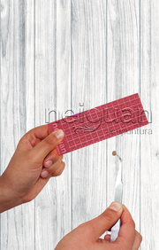 Con un cutter limpio, navaja o bisturí, realizamos los cortes en parches, guiándonos con las líneas trazadas en la misma.